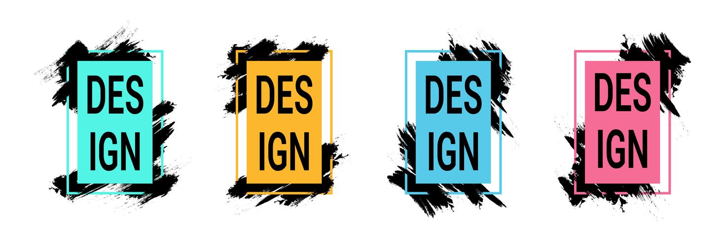 Vector Set Of Color Frames With Black Brush Strokes For Text